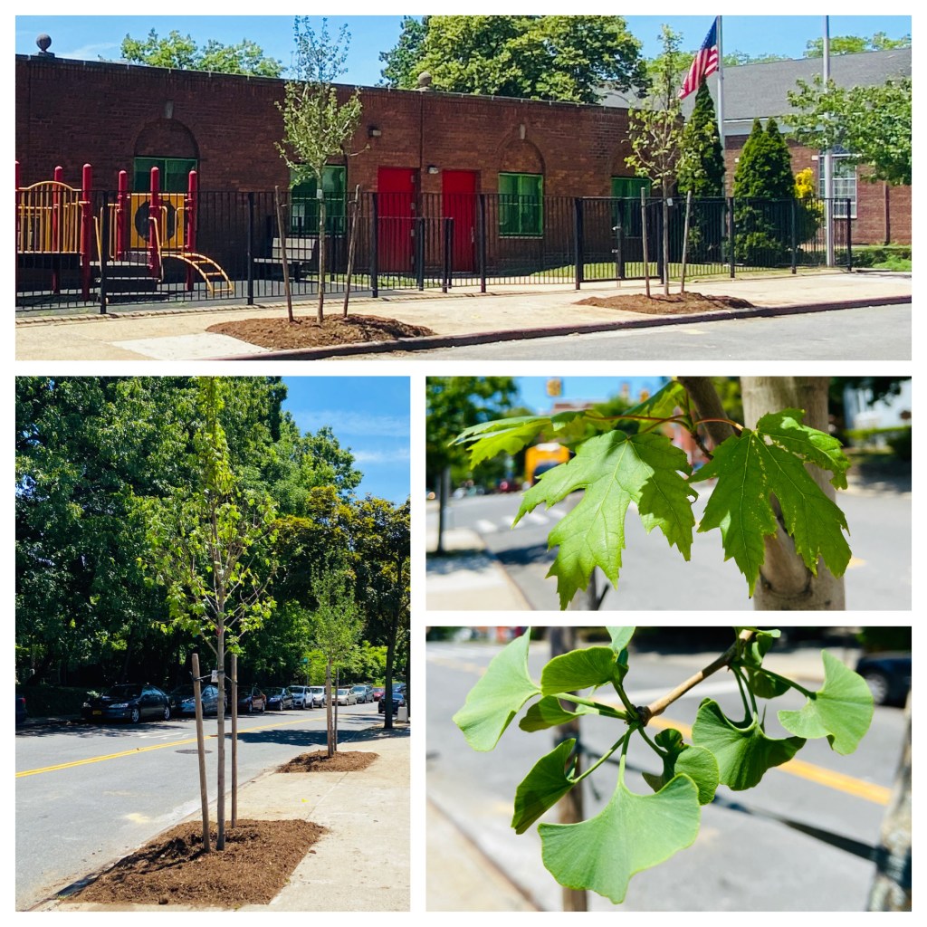 The Parks Department came by and planted a couple of new trees by the Annex playground! Looks like we have a baby Silver Maple and a baby Gingko on Kew Gardens Road, two of the most common species of trees in New York.