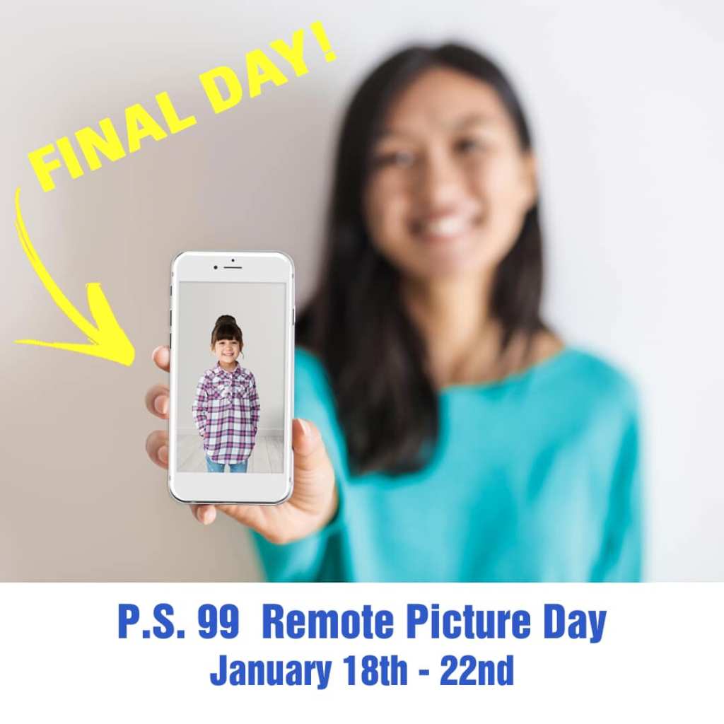 Remote Picture Day is for everyone but time is running out so if you have not already uploaded your picture this is the last opportunity to join PS99 in making picture day a success.